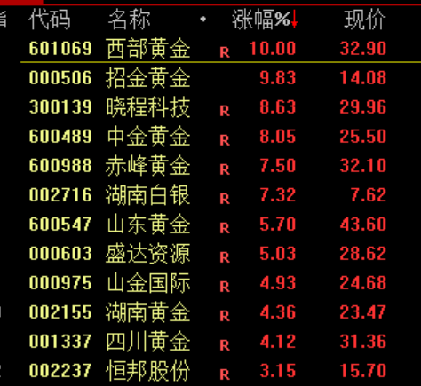 黄金股午后走强,西部黄金、白银有色等封板。消息面上,现货白银价格大涨近3%,创下历史新高。现货黄金价格一度站上4070美元/盎司。