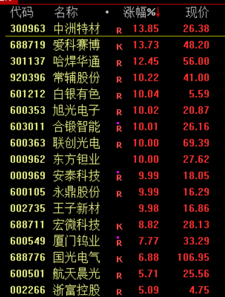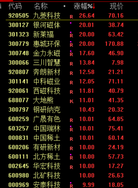 稀土概念股集体爆发,中国稀土、北方稀土等十余股涨停。消息面上,海关总署公布数据显示,中国9月稀土出口4000.3吨,8月出口5791.8吨。中国1-9月稀土出口48355.7吨。另外,商务部10月9日发布2025年第61号和第62号公告,分别公布对境外相关稀土物项实施出口管制的决定,以及对稀土相关技术实施出口管制的决定。